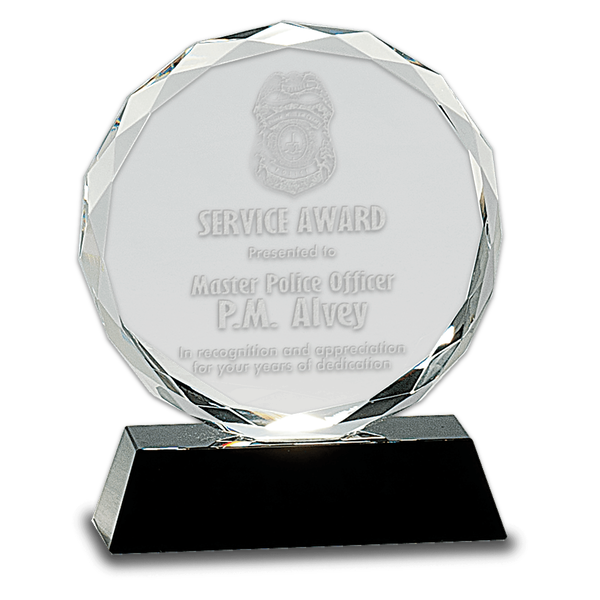 Round Facet Crystal with Black Pedestal Base