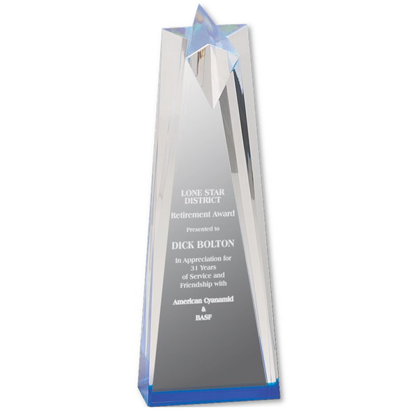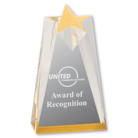 Stand apart from the crowd with this 2" thick clear acrylic tower is sculpted to form a three dimensional star at the top. A great way to celebrate achievement of any kind, but especially to reward your rising stars.