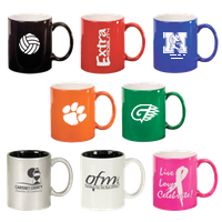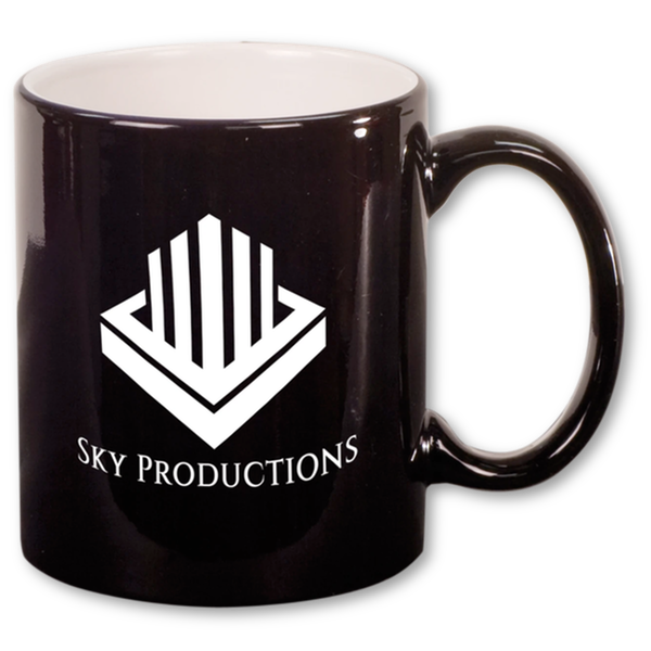 Classic 11 oz ceramic coffee cup with wide handle and personalized with your logo and/or name. A Must Have for any office break room - also a great give away to keep your logo in front your your customer at every coffee break. Personalization is laser etched to show the white ceramic or black for the silver and white cups.