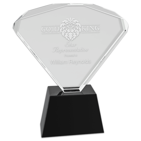 A unique and inspiring design. The crystal expands from the base and is topped with a brilliant faceted edge. Personalized with your award message deep etched and presented in an impressive award box.